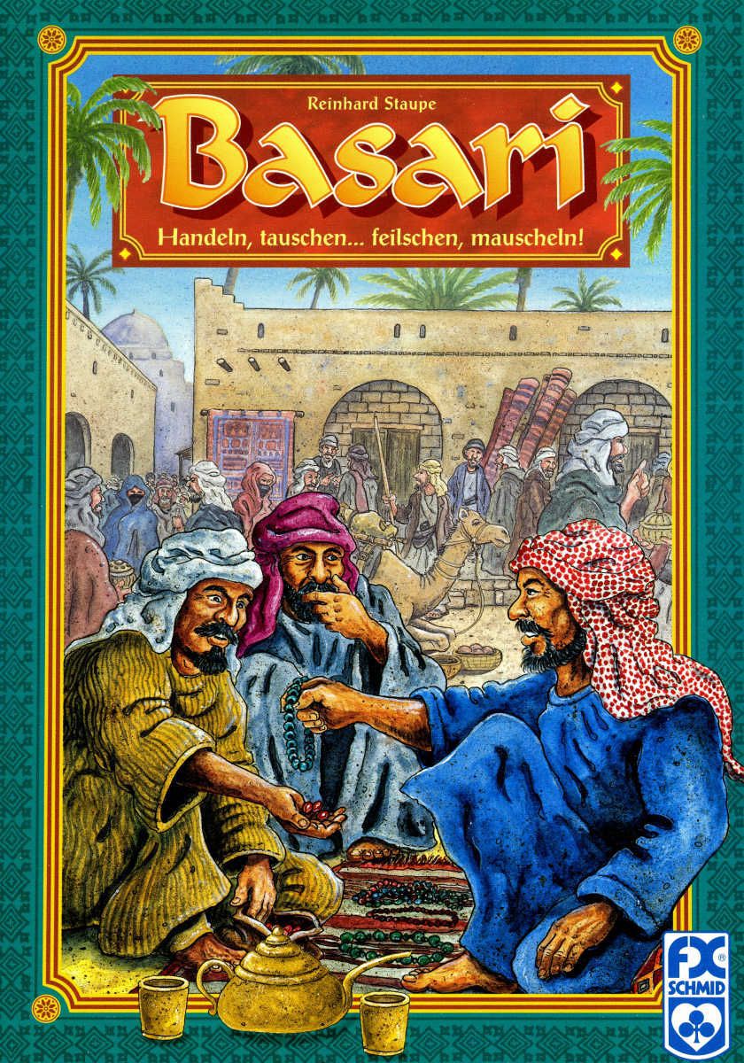 BASARI ist ein überaus listiges Verhandlungsspiel für drei bis vier Spieler ab etwa zwölf Jahren. In jeder Runde müssen sich die Spieler für eine von drei möglichen Spielaktionen entscheiden. Geheim selbstverständlich. Dabei ist es wichtig, die Möglichkeiten und Ziele der Mitspieler im Auge zu haben. Wer es schafft, seine Gegner richtig einzuschätzen, hat gute Siegchancen. Wenn alle Spieler ihren geplanten Spielzug aufdecken, wird deutlich, wer den besseren Riecher hatte. Gut ist es, wenn man sich alleine für eine bestimmte Aktion entschieden hat. Dann ist man fein raus und macht seinen Zug ohne jeden Widerspruch. Ganz schlecht ist es, wenn sich gleich drei Spieler dieselbe Aktion herausgepickt haben. Sie gehen leider alle leer aus. Haben aber zwei Händler dieselbe Aktion gewählt, müssen diese darum handeln, wer von beiden den Zug ausführen darf. Jetzt spielt Handelsgeschick, gute Übersicht und nicht zuletzt ein gutes Polster wertvoller Edelsteine die entscheidende Rolle. Letztendlich geht es darum, bei jeder der drei Wertungen im Spielverlauf möglichst die Mehrheit einer bestimmten Edelsteinsorte zu besitzen. Dafür gibt es wichtige Siegpunkte. BASARI basiert auf zwei gleichermaßen reizvollen Spielelementen. Zum einen die Spielphase, in der man die möglichen Vorhaben der Mitspieler erahnen und darauf reagieren muss. Zum anderen bietet BASARI ein außerordentlich nettes, feinsinniges und nicht zu anspruchsvolles Handelsspielmoment, das weder über- noch unterfordert.