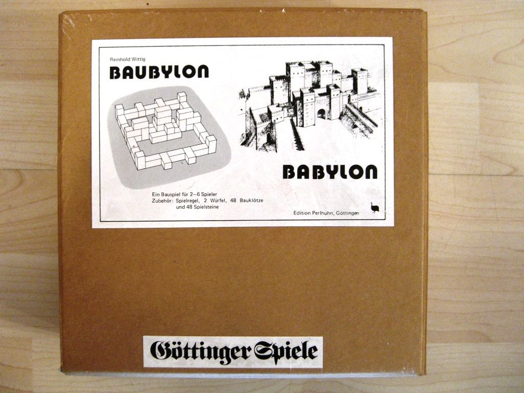 BAUBYLON von Reinhold Wittig beginnt mit einem Vor-Spiel: Zuerst nämlich ist aus den 48 Holzklötzen gemeinsam das Bauwerk zu errichten, auf dem dann BAUBYLON gespielt wird. Alle Spieler können so über Spieldauer und Schwierigkeitsgrad mitentscheiden. BAUBYLON erinnert in vielfacher Hinsicht an MALEFIZ: Es ist ein Würfelspiel, bei dem es gilt, auf mehreren möglichen Wegen einen Stein seiner Farbe als Erster ins Ziel zu bringen. Wer geschlagen wird, muss von vorne beginnen, und wie beim MALEFIZ gibt es Steine, mit denen man seine Gegner blockieren kann. Der entscheidende Unterschied zu MALEFIZ liegt jedoch darin, dass BAUBYLON dreidimensional ist und dadurch die Möglichkeit des räumlichen Spielens bietet. Gerade aus diesem Grund bietet BAUBYLON einen Heidenspaß.