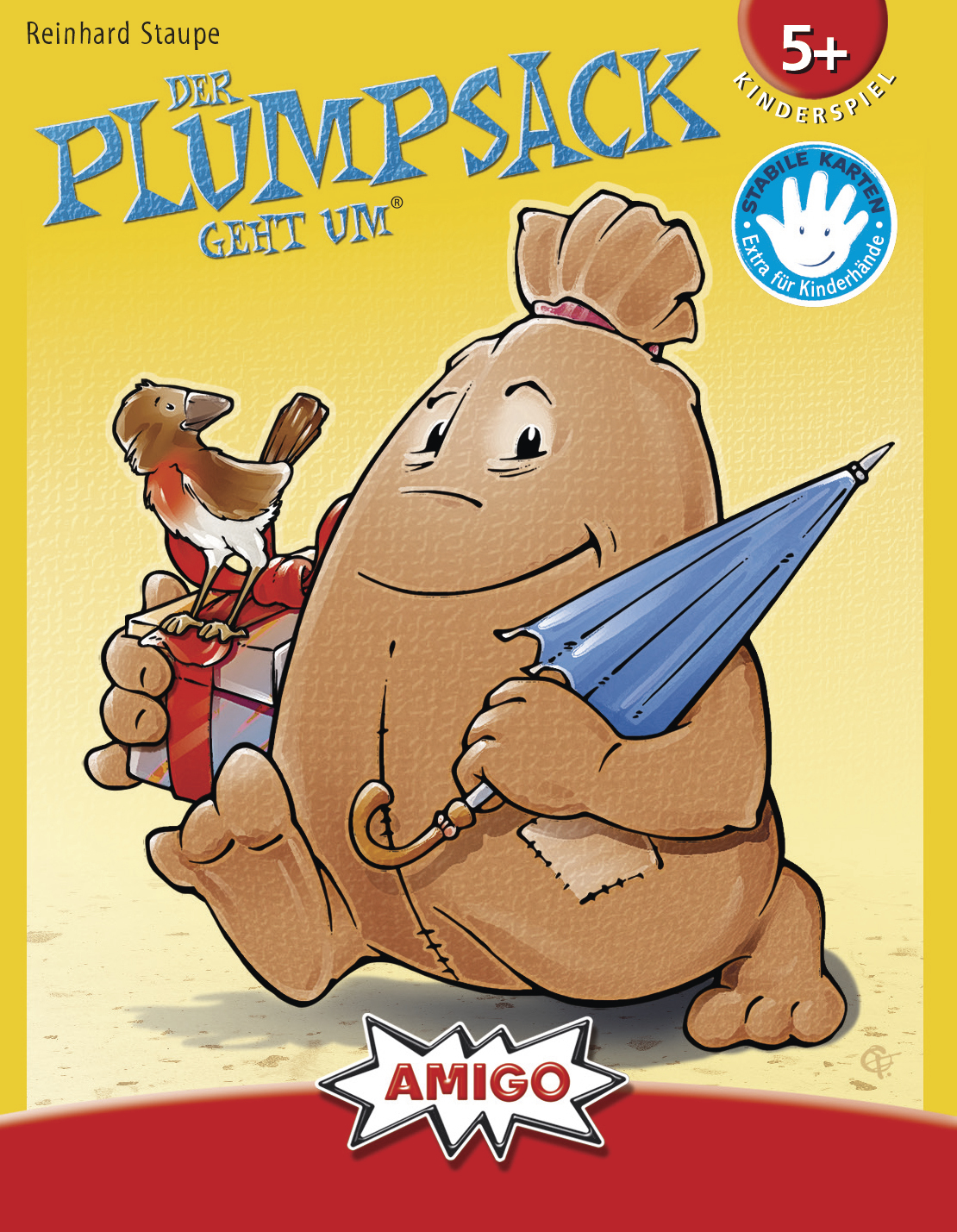 Im Grunde ist es eine pfiffige MEMORY-Variante, bei der „nur“ acht Karten im Kreis liegen. Nach kurzem Anschauen werden sie umgedreht, und jetzt beginnt der Gedächtnis- (oder doch Rate-?)Spaß: Ein Mitspieler legt den Plumpsack vor eine Karte, die ich nun wissen soll. Banane!? Richtig, weiter. Dabei geben immer eine Zahl und ein Pfeil auf der erratenen Karte an, in welche Richtung und um wie viele Karten man weitergehen muss. Bei Banane: zwei nach links. Schirm!? Wieder richtig? Dann geht’s weiter, bis man auf eine bereits aufgedeckte Karte trifft: Die ist dann mein verdienter Lohn. Falsch? Dann werden alle Karten umgedreht, und der nächste ist an der Reihe. Abgeräumte Karten werden durch neue ersetzt, so dass sich das Kartenbild ständig verändert. Spätestens beim dritten Spiel kommt man da als Erwachsener ins Grübeln: Da lag doch der Hut! Oder war das im vorigen Spiel? Kinder aber sind jetzt erst richtig warm geworden und zeigen den „Alten“ schnell deren Grenzen auf. Dazu kommen eine liebevolle Graphik und kindgerechte Karten. So ist DER PLUMPSACK GEHT UM rundum zu empfehlen.