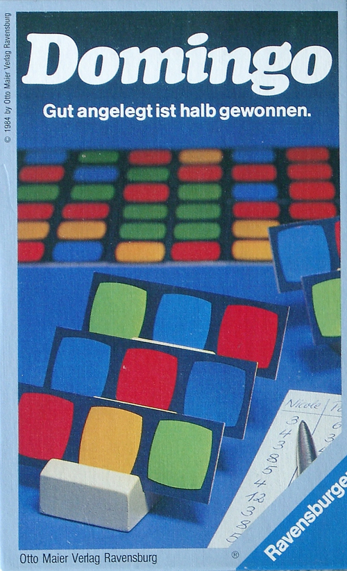 Ohne etwas Glück beim Ziehen der Farbkärtchen kommt man bei dem Legespiel DOMINGO von Kenneth Rand nicht aus. Es geht darum, durch geschicktes Anlegen möglichst lange Reihen gleichfarbiger Felder zu bilden. Da die Reihen kreuz und quer verlaufen dürfen, braucht es schon einige Aufmerksamkeit und Vorausschau, um mit den drei jeweils zur Verfügung stehenden Kärtchen so effektiv wie möglich punkten zu können. Obwohl als Konkurrenzspiel angelegt, stellt sich doch immer wieder der angenehme Effekt ein, dass alle Teilnehmer gemeinsam auf die günstigste Plazierung einer ausgespielten Karte achten und beim Auszählen einander auf noch nicht berücksichtigte Felder aufmerksam machen. Auf diese Weise haben letztlich alle am Sieg des einen Anteil, ohne dass dies dem Wettrennen beim Punktestand Abbruch täte.