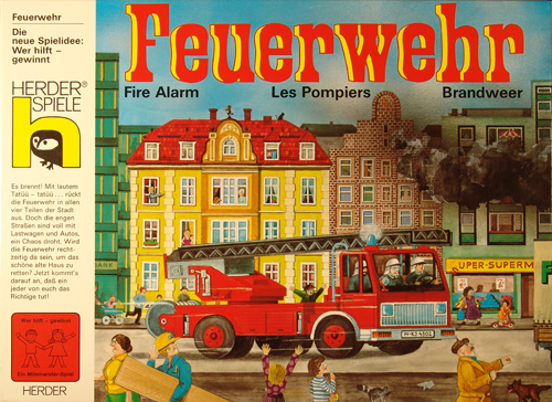 Großbrand in der Innenstadt! Die kleinen Feuerwehrleute rücken mit ihren Löschzügen zur Brandbekämpfung aus. Doch die Straßen sind mit Lastwagen völlig verstopft, so dass kaum voranzukommen ist, derweil die Flammen immer höher schlagen. Da kann nur gegenseitige Unterstützung helfen, worauf die Teilnehmer freilich selbst erst einmal kommen müssen. Dabei bleibt trotz der Verwendung eines Symbolwürfels genug Raum für eigene Entscheidungen, so dass der Eindruck vermieden wird, den Mechanismen des Spiels völlig ausgeliefert zu sein. Trotz aller gemeinsamen Bemühungen wird es oft äußerst knapp, dass das rasch um sich greifende Feuer nicht mehr rechtzeitig gelöscht werden kann. Für wachsende Spannung ist damit jedenfalls bestens gesorgt, und wenn´s diesmal nicht geklappt haben sollte, dann eben beim nächsten Mal.