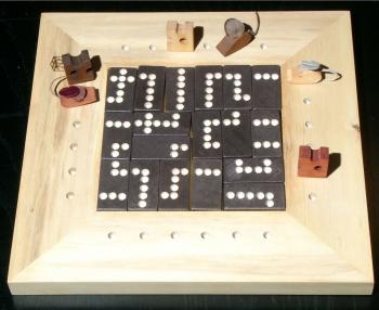 Der kleine Pyramo-Vertrieb von Silvia Heinz mausert sich zur ersten Adresse anspruchsvoller Solitärspiele. Ihr neuestes Werk IRRGENDWIE scheint so einfach und ist so kompliziert, dass man wirklich daran irre werden kann, ehe man vielleicht „irrgendwie“ eine Lösung findet. Immer sind es eine bis drei Mäuse, die gleichfarbige Käsestücke erreichen sollen. Dazu muss man ihnen mit den 18 Puzzleteilen einen Weg bauen, der keine Sackgassen aufweisen darf. In einigen Aufgaben kommt dem geplagten Hirnakrobaten zusätzlich eine Wühlmaus in die Quere, deren vorgegebener Gang, ein in sich geschlossener Rundweg, ebenfalls berücksichtigt werden muss. IRRGENDWIE ist äußerst variabel, weil man entweder die mitgelieferten Aufgaben lösen oder eigene Aufgabenstellungen erfinden kann. Es hat aber einen ausgesprochen hohen Schwierigkeitsgrad und ist deshalb nur für geduldige Menschen mit viel Zeit zu empfehlen. Für den Fall der Fälle gibt es beim Hersteller ein Lösungsblatt.