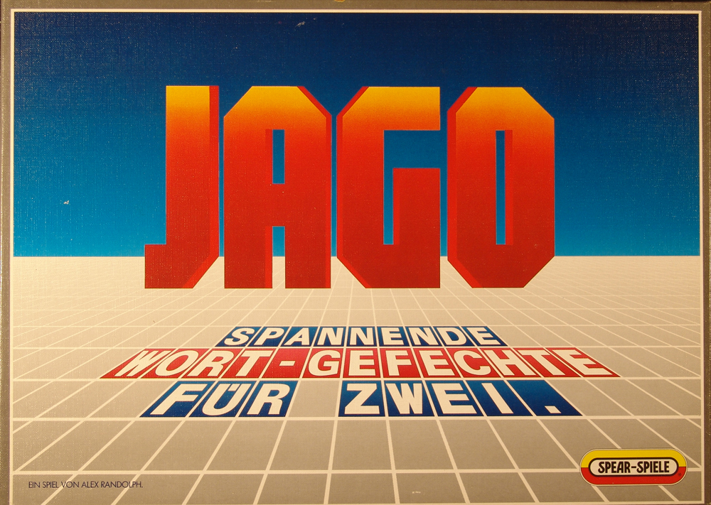 Aus der Masse der Kreuzwortspiele hebt sich JAGO durch eine Kombination interessanter Mechanismen wohltuend heraus. Unverkennbar trägt es die Handschrift des Altmeisters Alex Randolph. Ein Spieler darf so lange Wörter auslegen, bis er mit den Buchstaben seiner Farbe ein Übergewicht auf dem Spielbrett erzielt. Dabei verhindert ein raffinierter Timer, der im Minutentakt einer Sanduhr das Zeitkonto des Gegenspielers erhöht, überlange Grübelorgien. Besonders effizient ist es, auf fremde Wörter Jagd zu machen. Diese dürfen nämlich farblich umgepolt werden, wenn es gelingt, ihre Bedeutung durch Anlegen oder Austauschen von Buchstaben zu verändern. Während man so seine eigene Buchstabenpräsenz auf dem Brett kräftig verstärkt, muss der Gegner zugleich einen schmerzlichen Verlust hinnehmen.