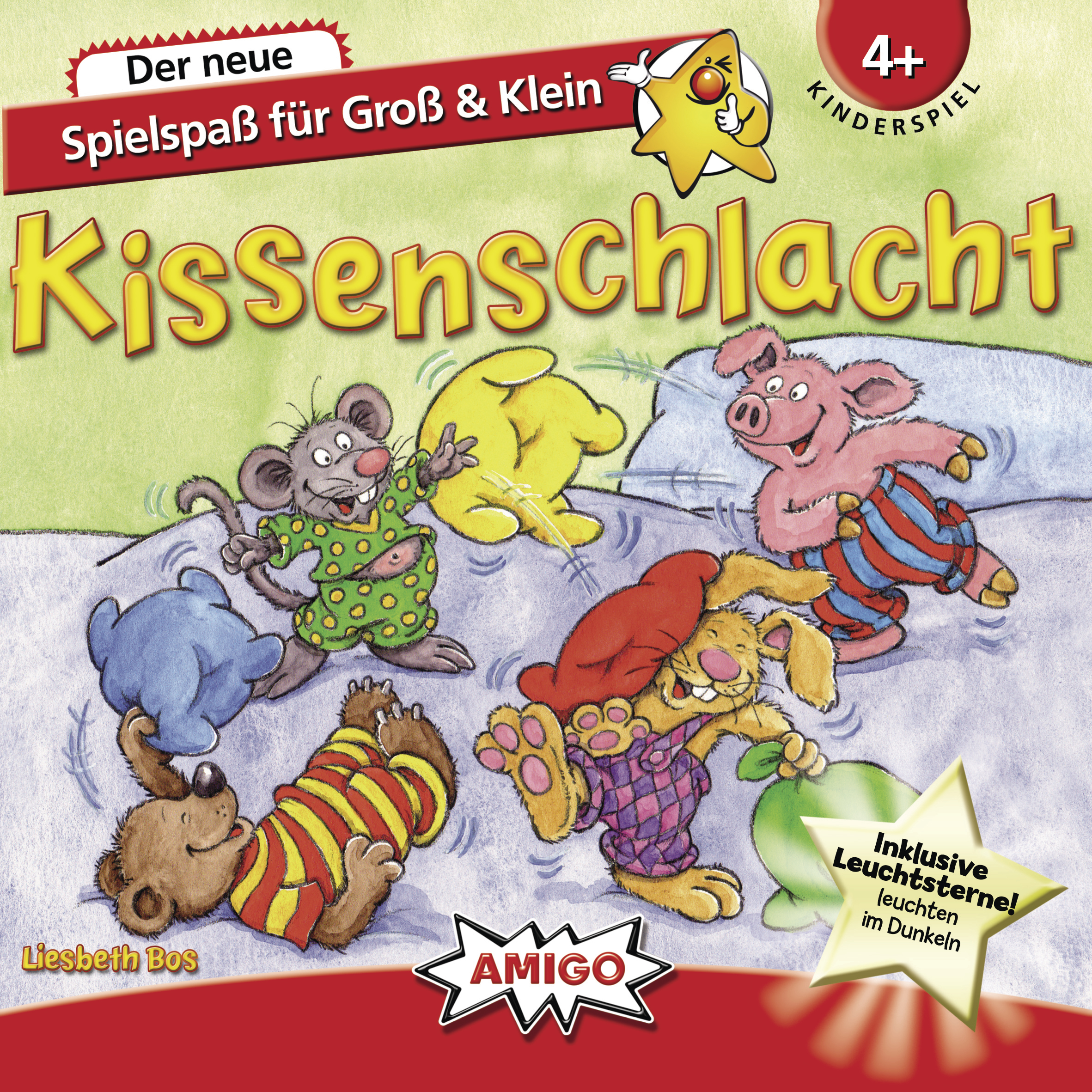 Wer denkt, im Kinderzimmer ginge es friedlich zu, wenn die Kinder aus dem Haus sind, der irrt sich. Denn dann starten die Kuscheltiere Mausi & Co. so richtig durch! Rund um den Spielkarton nehmen die Spieler mit ihren Schleudern Aufstellung für eine Kissenschlacht. Anfangs versucht man, die eigenen Kissen direkt ins Himmelbett zu katapultieren. Zur Belohnung darf man eines seiner Kuscheltiere auf einem der vier Bettpfosten postieren. Doch dort droht Gefahr, denn die Spieler dürfen die gegnerischen Figuren auf den Pfosten anvisieren und mit einem gezielten Schuss zurück ins Bett befördern. Gelingt es, muss der Getroffene eines seiner Kissen wieder aus dem Bett nehmen. Ein turbulentes Geschicklichkeitsspiel, bei dem Klein und Groß gleichermaßen Treffsicherheit trainieren können.