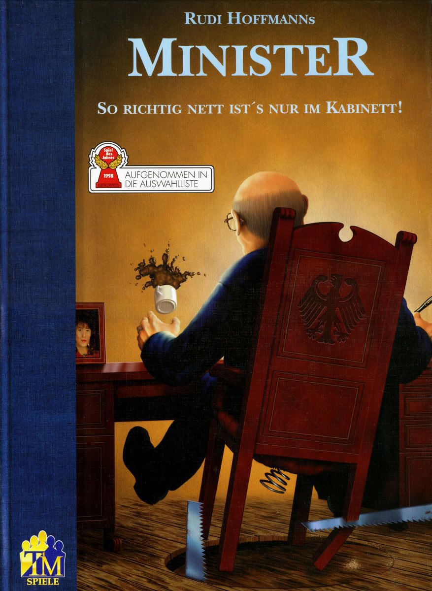 Hintergründige, ironische Bosheit macht aus MINISTER beinahe schon zu Realismus pur. Wer am Schluss den Kanzler stellt, gewinnt. Die Ministermehrheit stellt den Kanzler. Am meisten Ministerpöstchen bekommt zugeschanzt, wer die meisten Pressekonferenzen anzettelt. Dazu braucht man nicht Intelligenz, sondern Würfelglück. Das ist fast so wie im echten Leben. Die Zugmechanik ist originell. Auf jedes Feld folgt eine kleine Barriere mit Zahlen. Wenn man eine davon würfelt, darf man weiterziehen. Sonst tickt die Uhr und rückt den Zeitstein dem Ende des politischen Gerangels einen Schritt näher. Doch zuvor drängen die Minister ins Kabinett. Sind alle Ressorts besetzt, fliegt eben ein Kollege aus dem Amt, worauf er eine Pressekonferenz gibt und eine regelrechte Ministerernennungslawine auslöst. Auf Einflussfeldern kann man Gegenspieler in den Fettnapf bugsieren, aus dem sie sich erst wieder mühsam herauswürfeln müssen. Und schließlich ist da auch noch der Meinungsmacher, der pausenlos Minister produziert. Kaum hat einer im Kabinett eine beruhigende Übermacht, rotten sich die anderen zu einer unheiligen Opposition zusammen und jagen systematisch die Amtsinhaber von der Regierungspartei in den Ruhestand. Bis sich ein anderer auf dem Kanzlerthron breit macht, um bald darauf ebenfalls abgesägt zu werden. Das alles ist so einfach und so plausibel, dabei so fein gesponnen und so voll Witz. Ein brillantes Würfelspiel.
