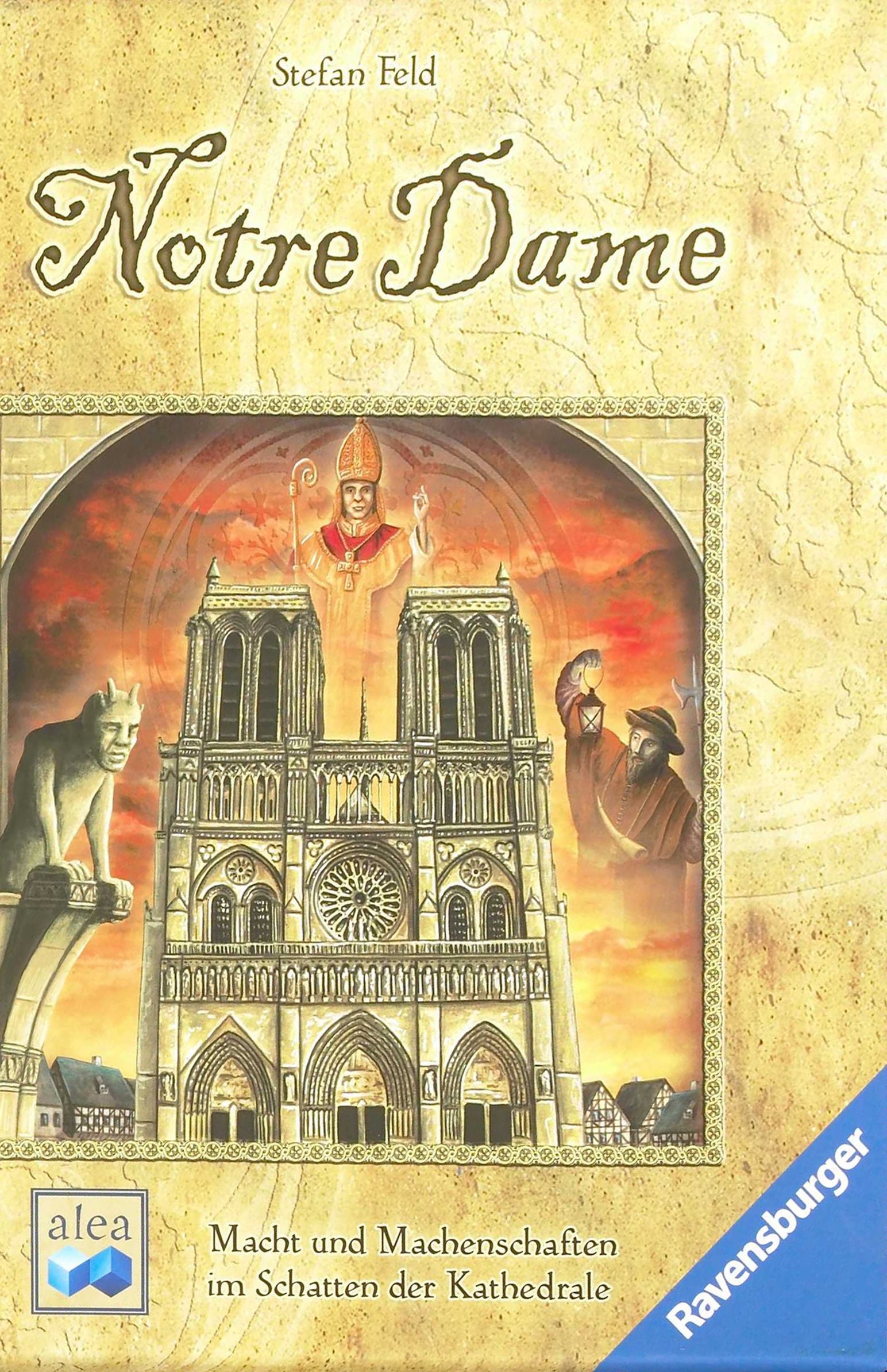 Anspruchsvolle Spiele müssen nicht kompliziert sein. Wenn man bei „Notre Dame“ die Regeln verstanden hat, läuft das Spiel zügig. Jeder Spieler legt Einflussmarker in sein Stadtviertel auf dem Plan. Dafür bekommt er Geld, Siegpunkte und weitere Marker. Ziel ist es, Prestigepunkte zu sammeln. Die Spieler müssen die Pest im Auge behalten und sich rechtzeitig vor der Rattenplage schützen, weil sie sonst schnell Hab und Gut verlieren können. Sie bestechen Kirchenpersonal, Stadtwache oder Bürgermeister, entsenden ihre Kutschen in andere Viertel und schicken auch mal einen Stein zur Kathedrale Notre Dame. Der Clou sind die Spielkarten, von denen man immer nur eine behalten darf, die anderen jedoch an den Nachbarn weitergeben muss. Ein Leckerbissen für echte Spielefans.