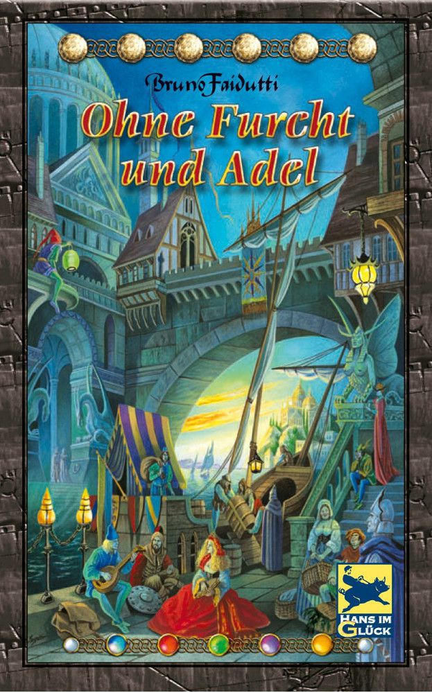 Einen Hauch, aber nur einen Hauch von dem, was sich da rund um die Baustellen tat, was sich da an lichten, aber auch an zwielichtigen Figuren herumtrieb und sein Wesen und Unwesen trieb, das vermittelt das Kartenspiel mit dem vielsagenden Titel OHNE FURCHT UND ADEL. Um es gleich vorweg zu sagen: für Freunde taktisch-strategischer Spiele ist das ein rechter Leckerbissen und schön gestaltet allemal.