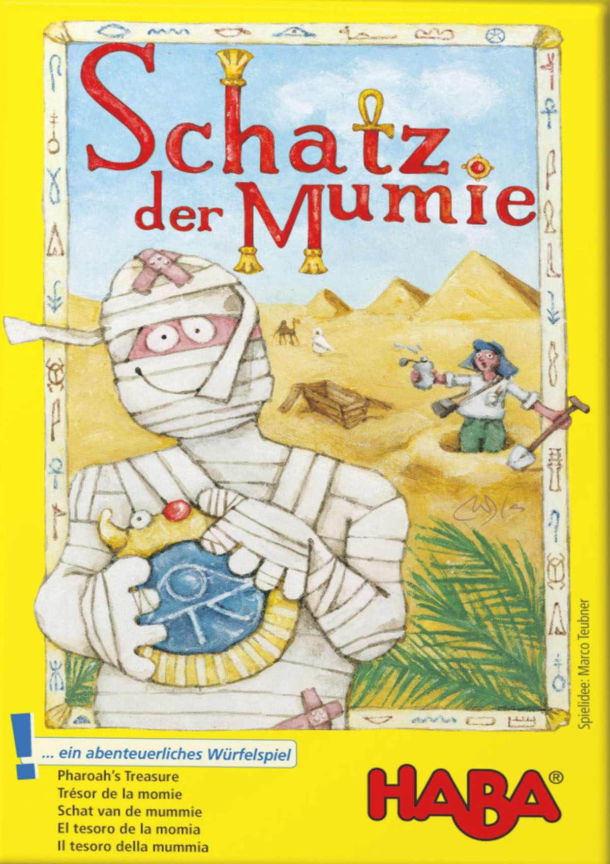 Ein Grabungsfeld liegt vor den kleinen Altertumsforschern und wartet auf wertvolle Funde. Puzzleartig soll die Grabungsfläche gefüllt werden mit den unterschiedlich geformten Schatzplättchen, auf denen Skarabäen, Münzen und Vasen zu sehen sind. Für die Schatzsuche liegen fünf Würfel bereit. Ähnlich wie beim „Kniffel“ dürfen die Archäologen dreimal würfeln, um an große oder passende Schatzkarten zu gelangen. Da die Plättchen verschiedene Formen besitzen, müssen sie lückenlos auf der Ausgrabungsfläche untergebracht werden. Wer zuerst seinen Platz komplett mit Schatzplättchen belegen kann, gewinnt das leicht verständliche Würfelspiel. Würfelglück, aber auch etwas strategische Planung machen den Reiz dieser Schatzsuche aus, dem sich auch erwachsene Archäologen nicht entziehen können.