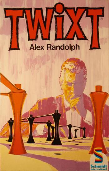 TWIXT erschien zuerst in der inzwischen legendären Reihe der 3M-Spiele, die erheblich dazu beitrugen, dass Spielen in Deutschland auch für Erwachsene attraktiv wurde. TWIXT gilt als das beste Spiel des Spiele-Autors Alex Randolph. Das Spielfeld besteht aus einer gelochten Platte. In die 24×24 Löcher können Türmchen gesteckt werden. Stehen sie im richtigen Abstand (Entfernung des Rösselsprungs), lassen sich die Türmchen mit Stegen verbinden. Ziel der beiden Spieler ist es, die einander gegenüberliegenden Spielfeldränder mit einer durchgehenden Figurenkette der eigenen Farbe zu verbinden. Dabei versuchen sie, sich gegenseitig den Weg abzuschneiden. Wer zuerst die eigene Linie durchgezogen hat, gewinnt das Spiel. TWIXT geht im Kern auf ein altes „Schreibspiel“ zurück, es erfüllt alle Bedingungen eines Klassikers: klarer Aufbau, logisch-einfache Spielregel, bei großer Variationsbreite hat es einen hohen Wiederspielreiz. TWIXT ist ein Leckerbissen für Freunde anspruchsvoller Taktikspiele.