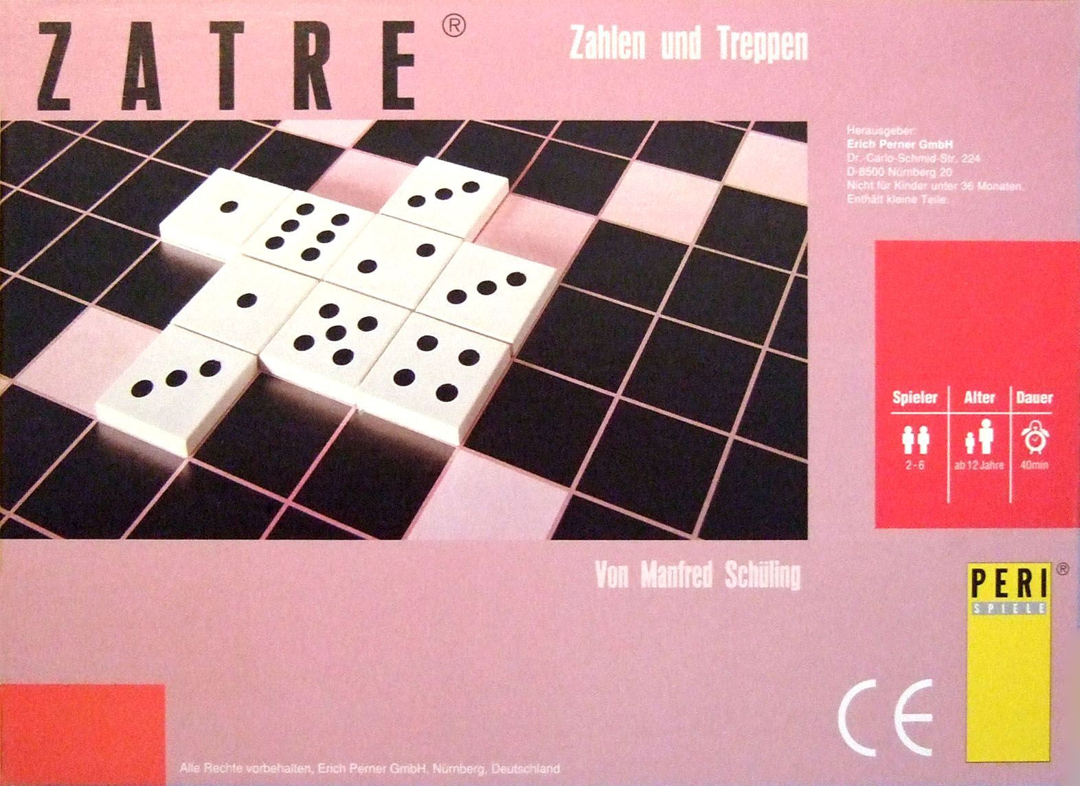 1990 erregte ein Spiel erst in der Berliner Kneipenszene und dann bei Insidern in der Spieleszene Aufsehen. Autor Manfred Schüling hatte sein ZATRE im Selbstverlag herausgebracht und konnte sich über eine rasch wachsende Zahl von Fans dieses ausgeklügelten Zahlen-Kombinationsspiels freuen. Dennoch dauerte es eine Weile, bis ein Verlag „anbiss“: Perner brachte schließlich ZATRE heraus. Das Spiel mit den 121 Spielsteinen auf einem Brett, das auf den ersten Blick an ein SCRABBLE-Board erinnert, erweist sich beim Spielen als ausgesprochen reizvolle Zahlentaktierei. Denn ZATRE – der Titel steht für „Zahlentreppe“ – ist ein mathematisches Kreuzworträtsel.