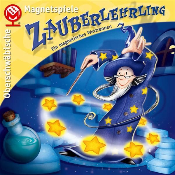 Auf vier Spiralwegen ziehen Zauberlehrlinge in eine Zauberwerkstatt. Ob sie auf diesem Weg vorankommen, bestimmt ein großer Magier, der sich auf acht magnetischen Zaubersteinen bewegt. Er spielt mit roten und grünen Signalen Zauberampel. Was anfangs für die Spieler rein zufällig geschieht, wird mit der Zeit berechenbarer. ZAUBERLEHRLING ist ein schnelles Spiel, es kann schon nach zehn Minuten beendet sein und dauert maximal die doppelte Zeit. Magnetspiele prägen schon viele Jahre das Programm des Verlages aus Oberschwaben. Das Spiel ZAUBERLEHRLING ist bisher der Höhepunkt.