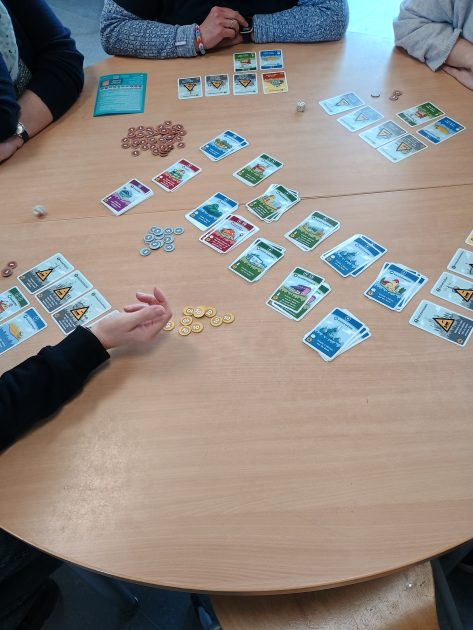 Hierzu hat der Projektverantwortliche nach Bewilligung es Projektes über die verschiedene internen Kanäle, Newsletter, persönliche Ansprache und Homepages Werbung für das Projekt gemacht. Schnell zeigte sich ein großes Interesse. Über Microsoft Forms wurde eine erste Abfrage initiiert, um Kontaktdaten, die Altersgruppe, mögliche Zeiten und die Ansprüche an die Spiele zu erfahren. Im Anschluss daran wurden u.a. auf der Spiel in Essen, in Fanforen und auf diversen Internetplattformen verschiedene Spiele recherchiert und grob abgesprochen, um zu vermeiden, dass Spiele bekannt sind. Im gesamten Projektverlauf war nur einer Gruppe ein Spiel bekannt. Nach der aufwendigen Terminfindung mit den Gruppen begann die Vorbereitungsphase in Form der Einarbeitung in die Spielregeln. Insgesamt haben 13 Gruppen an dem Projekt teilgenommen; 4 Jugendgruppen, 4 Gruppen aus dem offenen Ganztag an Grundschulen, 3 offene Türen und 2 Gruppen aus dem offenen Ganztag an weiterführenden Schulen mit insgesamt etwas über 100 Personen.