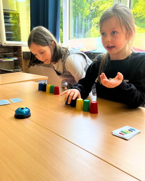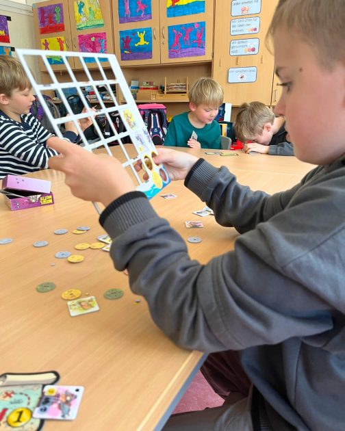 Aufgrund des großen Interesses haben wir schnell entschieden, bei der AG nicht mit einer geschlossenen Gruppe zu arbeiten, sondern sie für alle Kinder der Jahrgänge zwei bis vier zu öffnen. Nach den Osterferien haben wir dann die AG auch für die Erstklässler:innen geöffnet. Statt der Erarbeitung von Kurzregeln hatten wir unter den Kindern Spieleexpert:innen, die im Rahmen der AG anderen Kindern die Spiele erklären konnten.