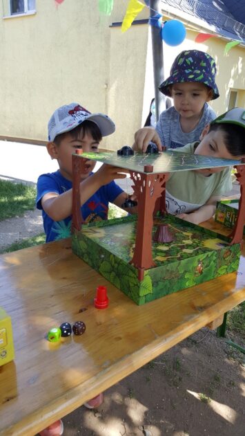 Nun, einige Wochen nach unserem Sommerfest spielen wir immernoch täglich verschiedene Spiele auf Wünsche unserer Kinder. Ein Klassiker ist „Der verzauberte Turm“ oder „Honigbienchen“ für die jüngeren Kinder. Und weil das Spielefieber aktuell nicht enden mag, machen wir einfach weiter. Unsere Eltern haben die Möglichkeit die Spiele auszuleihen und gemeinsam mit den Kindern zu bespielen. Das wird so gut angenommen, dass wir selbst aufpassen müssen, dass wir im Kindergarten noch welche haben, die wir tagsüber bespielen können.