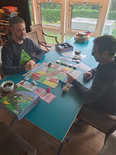 Wir haben nun mithilfe der Förderung im Sommer 2025 das Gesellschaftszimmer mit 3 großen Tischen ausgestattet, die vor allem für größere Spieltreffs besser geeignet sind, pro Tisch gibt es Platz für 10 Menschen, um auch sehr große Spielrunden zu ermöglichen. Darüber hinaus wurden rollbare Regalflächen für den freien Zugang zu Spielen im Gesellschaftszimmer in Eigenleistung erstellt.