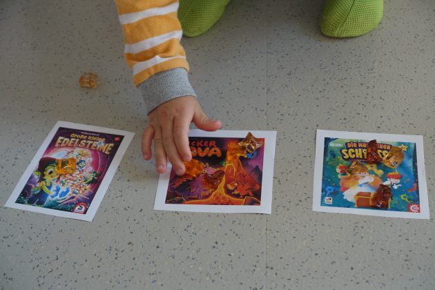 Die Auswahl der Spiele erfolgte in zwei Schritten. Im ersten Schritt durften die Kinder, aus einer Vorauswahl der Erzieher, selbst entschieden, welche Spiele angeschafft werden sollten. Im zweiten Schritt wurden beliebte Spiele erneut gekauft, damit diese auch mehrfach ausgeliehen werden können. Wir sind mit 11 Spielen gestartet und haben mittlerweile über 20 Spiele die die Kinder ausleihen können.