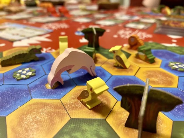Kessler hat hat ähnliche Kritikpunkte. Das Spiel sei zu lang, „im hinteren Drittel passiert nichts mehr“, meint er. Auch er findet, dass das Spiel ein „Hingucker“ sei: „Da schauen einem Leute über die Schulter, wenn man das auspackt, weil das so schön aussieht.“ Der Wasserfall sei allerdings „unübersichtlich. Der ganze Tisch ist sowieso schon voll, und dann sieht man den nicht mehr, wenn man nicht zufällig Glück hat und daneben sitzt“, sagt er. Überzeugt ist also auch er nicht. „Ich verstehe, warum sie diesen Mechanikmix mit dem Deckbuilding und dem Bauen gemacht haben, aber es hat mich nicht zu hundert Prozent abgeholt, und für mich ist dann der größte Kritikpunkt, dass es mir zu lange gedauert hat.“ Das sei „schade“, denn das Spiel sähe super aus und habe einen „super Ansatz“, meint Kessler, „ich glaube, das ist etwas, woran viele Interesse haben könnten, aber der Einstieg ist nicht leicht.“ Am Anfang habe ihn das Spiel überfordert, „bis ich dann gemerkt habe: Ich ignoriere einfach bestimmte Tiere, und gehe auf die anderen, aber dann ist das Spiel schon festgelegt. Das ist schade, ich würde es gerne mehr mögen.“4