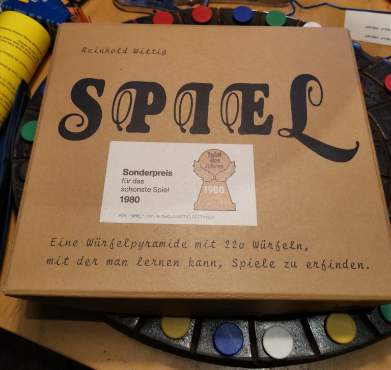 Erstmals damit bedacht wurde 1980 Reinhold Wittigs „Spiel“ – ein Titel von geradezu anmaßender Bescheidenheit. Als Spielfläche dient eine dreieckige Aluminiumplatte mit Vertiefungen in der Art eines Waffeleisens. An die 300 Augenwürfel in verschiedenen Farben können dort platziert und aufgetürmt werden, sodass schließlich eine massive Pyramide mit drei glatten Außenseiten entsteht. Gänzlich ungewöhnlich war der Verzicht auf mitgelieferte Regeln, verbunden mit der Aufforderung, sich selbst welche einfallen zu lassen. Die besten wurden später in einer Broschüre veröffentlicht. Einmalig in seiner Art und deshalb von Erwin Glonnegger in „Das Spiele-Buch“ (Ravensburger Buchverlag 2009) als Meilenstein auf dem Weg zu einer Kultur des Gesellschaftsspiels verortet.
